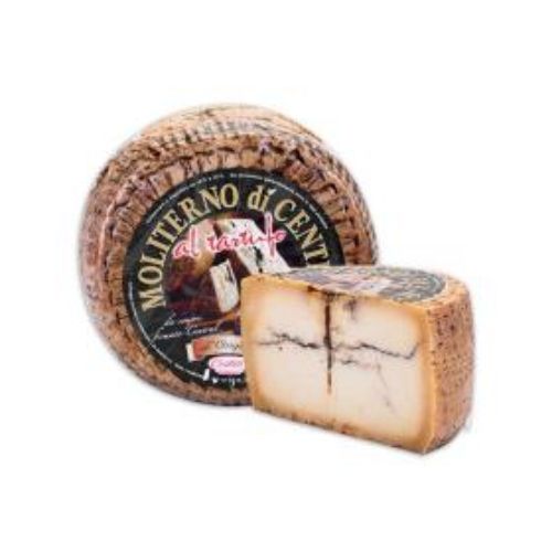 Queso curado con vetas de trufa, sabor intenso y aromático.